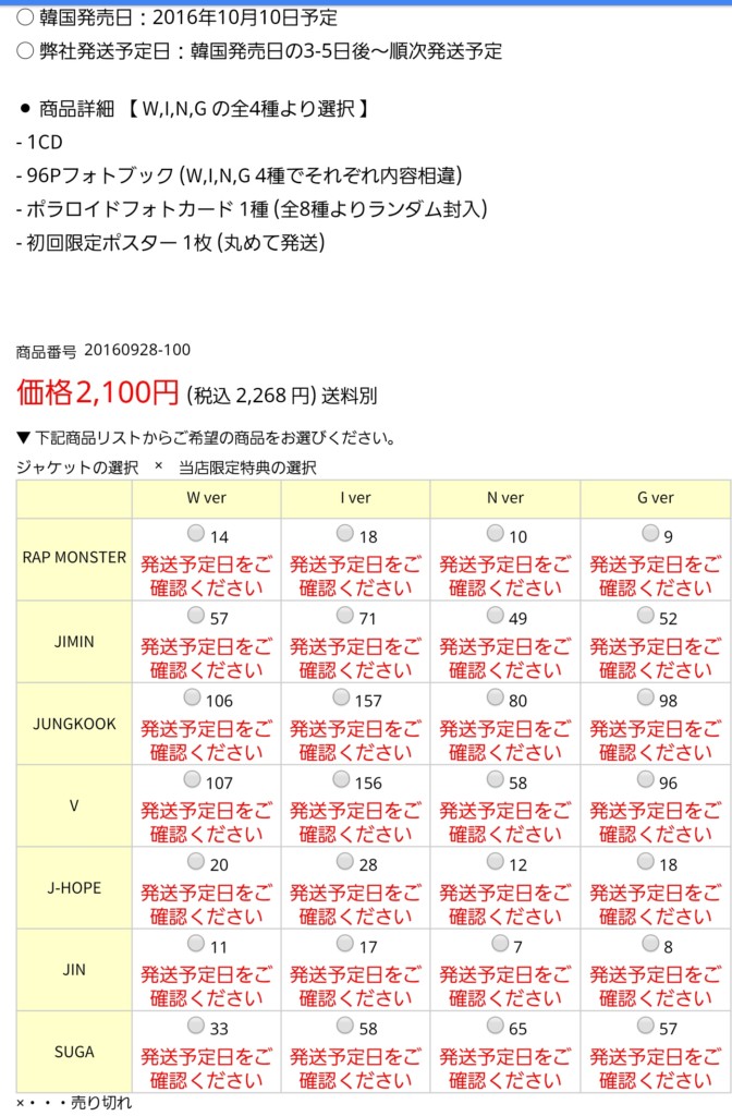②BTS防彈少年団2集CD「WINGS」韓国版発売へ~楽天、タワレコ、アマゾン値段(一覧表追記※)