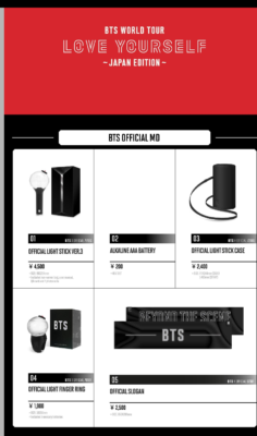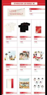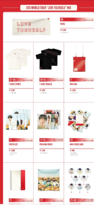 BTS防彈少年団「BTSLoveYourselfTour」コンサート、ライブグッズ 物販(MD)発表
