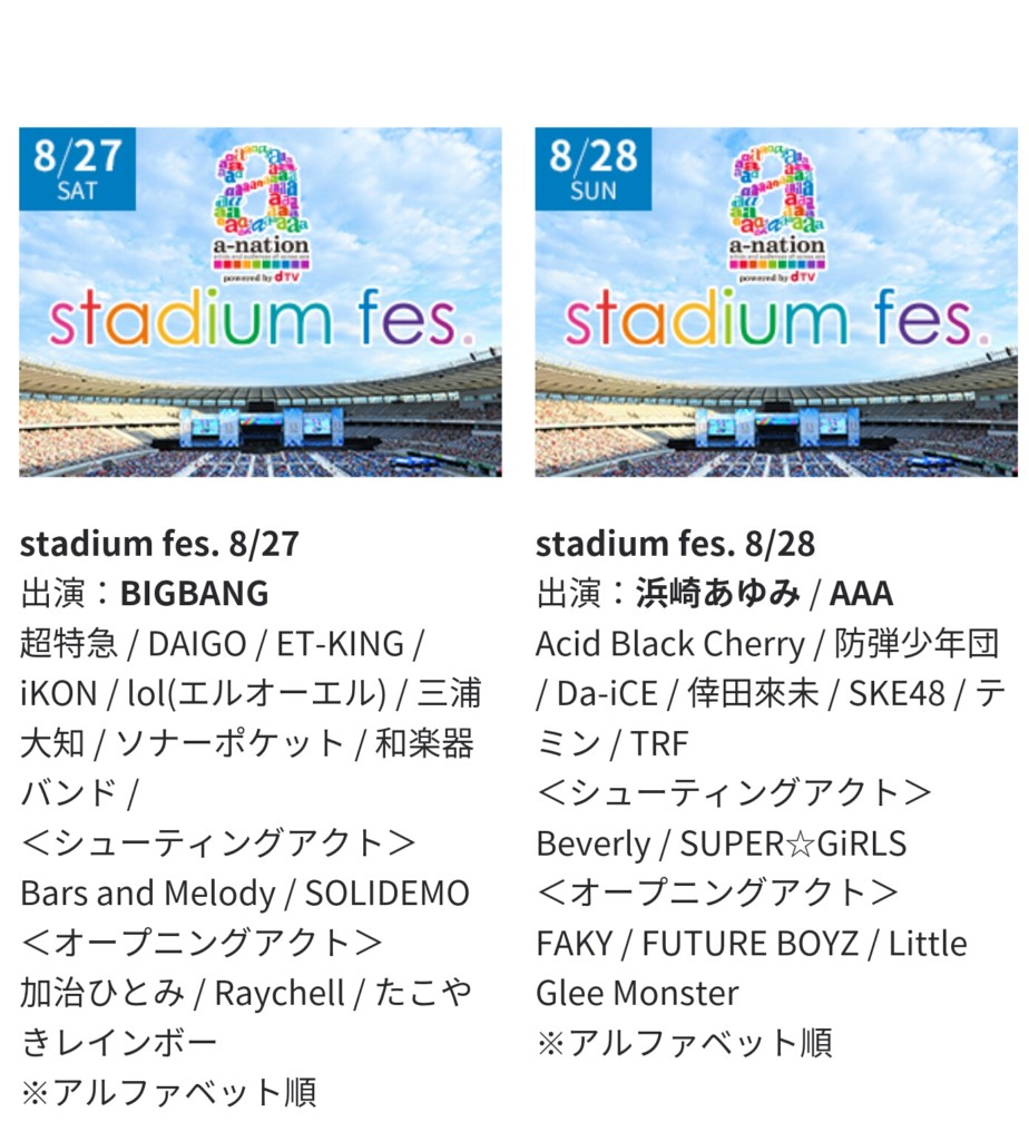 aーnation stadiumfes.(「エーネ」、「エーネーション」と略して呼ぶ事が多いです)