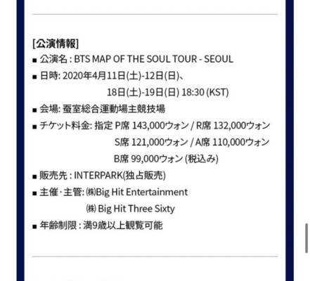 BTS ライブ2020ソウルコンチケット取り方、応募、会場10月オンラインも(インパ事前認証方法追記※2/23、28キャンセル、8/13追記)