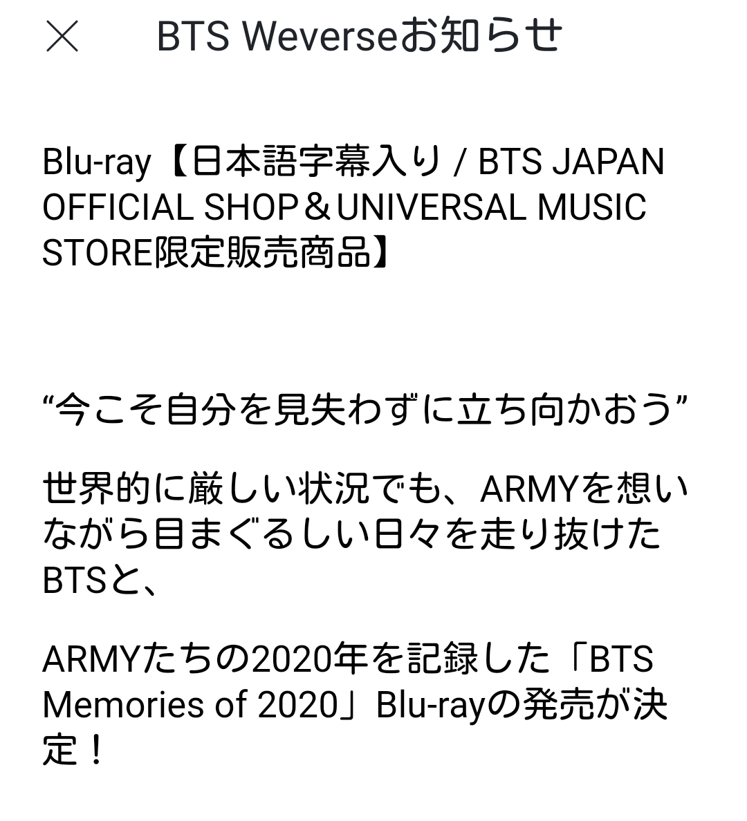 「#BTS Memories of 2020」DVD&Blu-ray追加予約販売に関するお知らせ