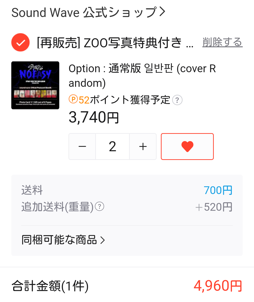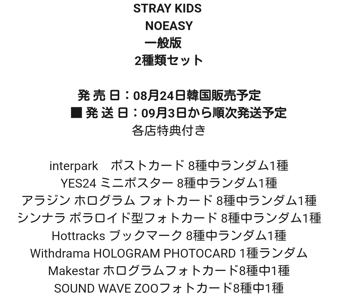 Stray Kids SKZ NOEASY アルバム特典SKZOOトレカ付CD通常盤購入(9/2加筆)