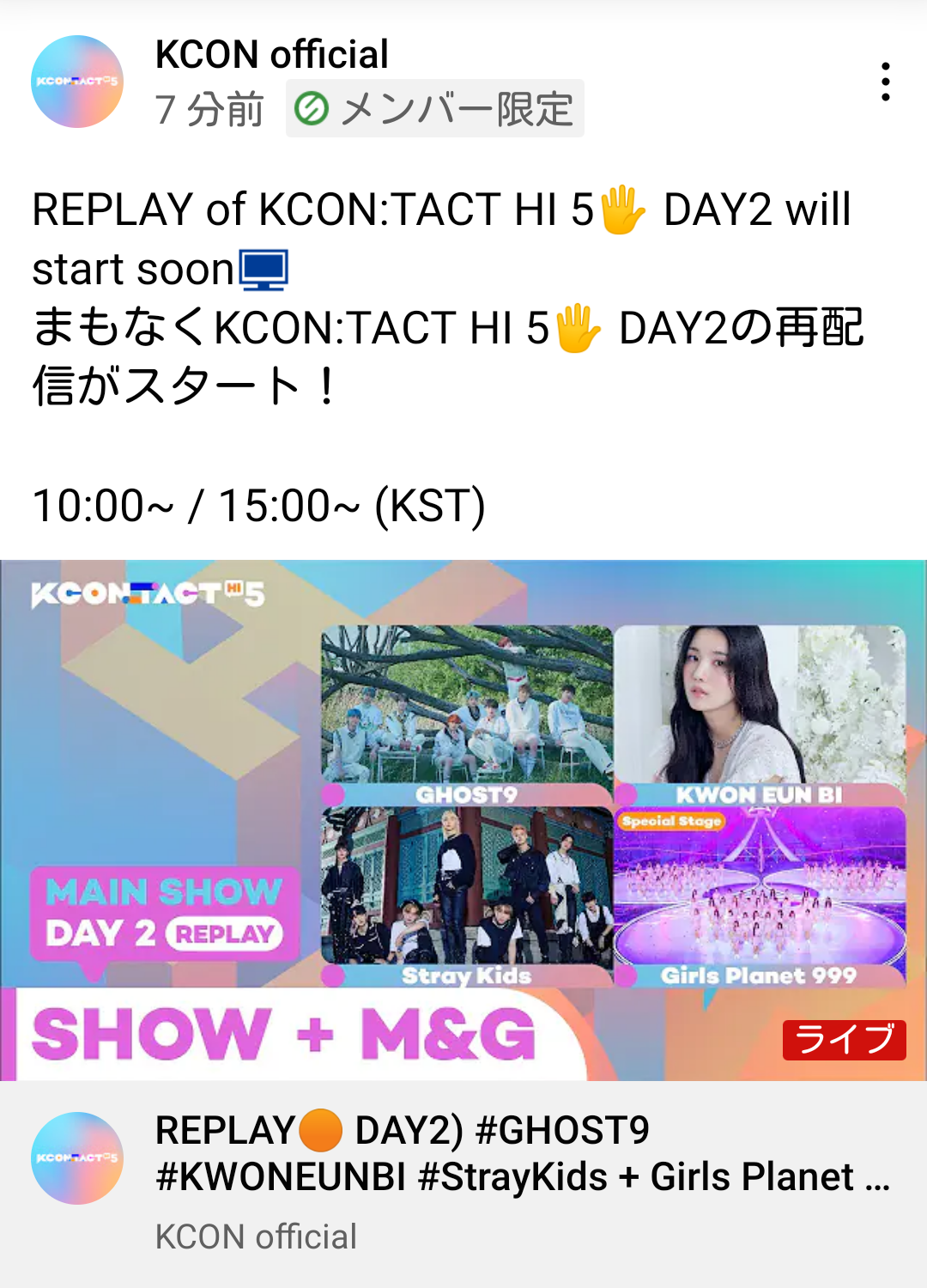 KCONライブ自体はいつ?スケジュール