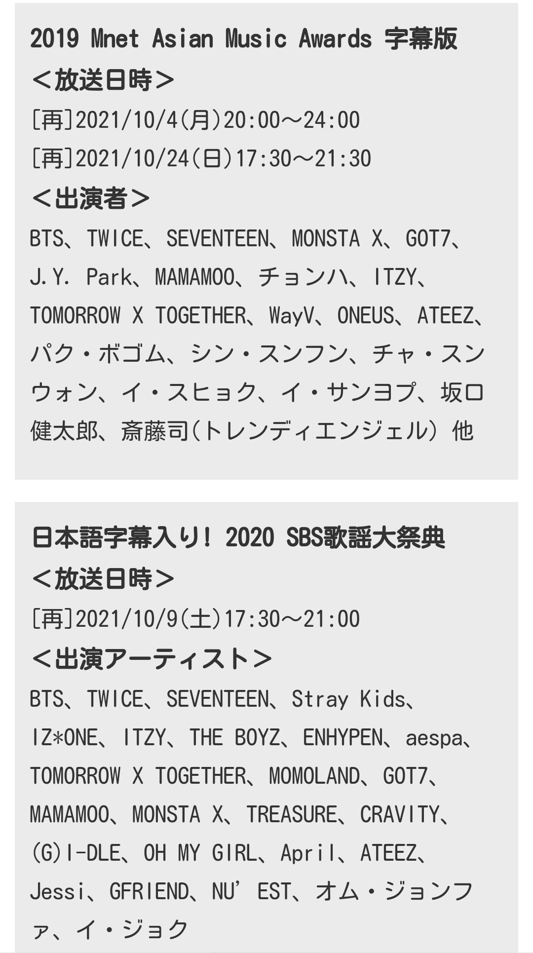 Mnetで、たくさん、放送してくれます。