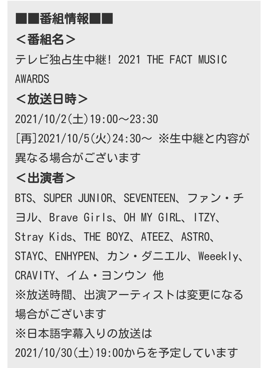 ☆2021 THE FACT MUSICAWARDS(TMA)
