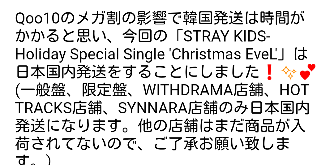 スキズCD”Christmas EveL” ラキドロ・Qoo10 SoundWave(12/17更新)