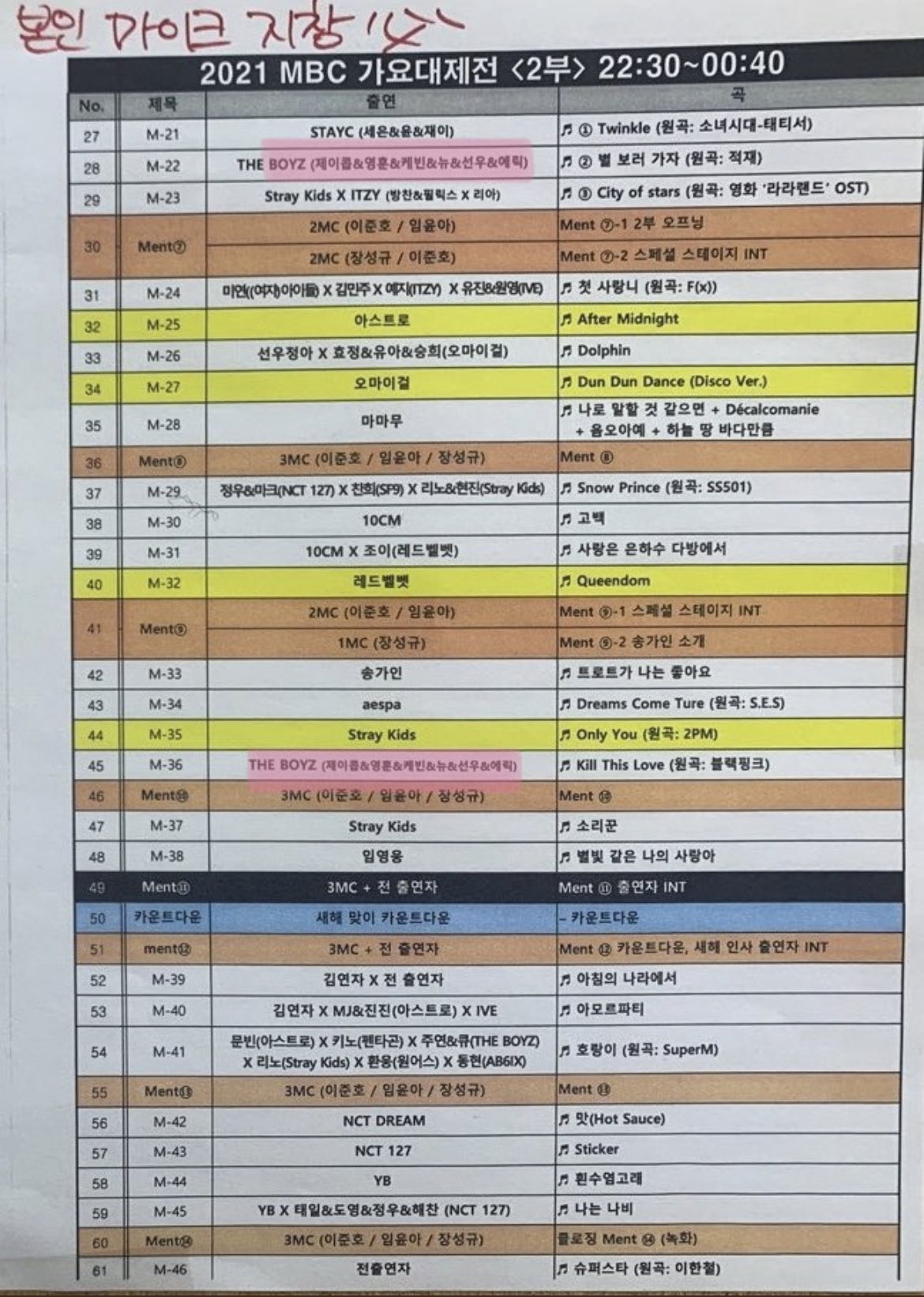 가요대제전 2부 큐시트! pic.twitter.com/3Bss5AEZaW