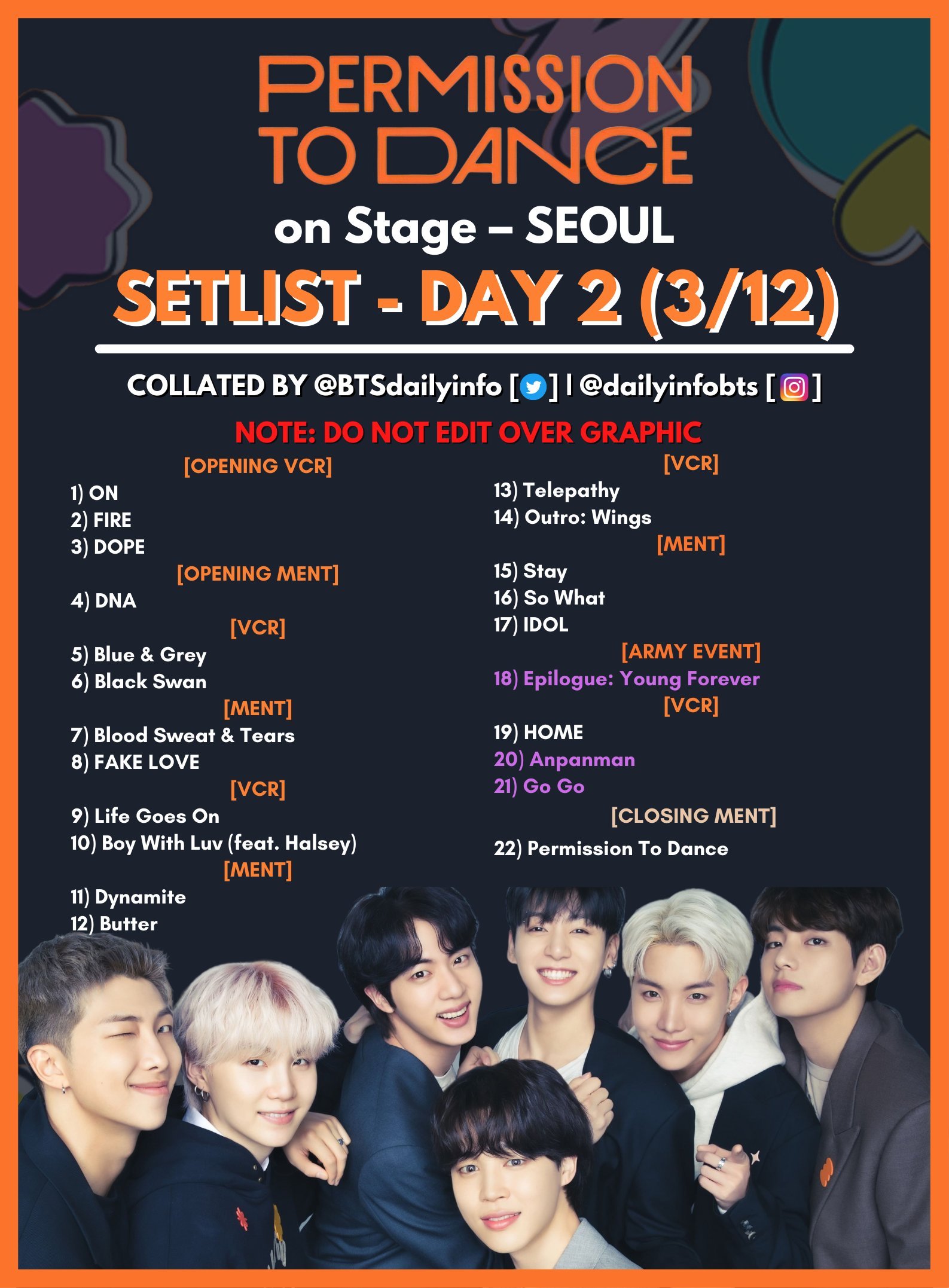 🌟 Day 2: (https://t.co/zgkeahUJYx)@BTS_twt#BTS #방탄소년단 #우리함께라면_허락은필요없어#PTD_ON_STAGE_SEOUL_day3 pic.twitter.com/ACITjjlbi9— BTS UPDATES⁷ | @BTSdailyinfo (@BTSdailyinfo) March 13, 2022