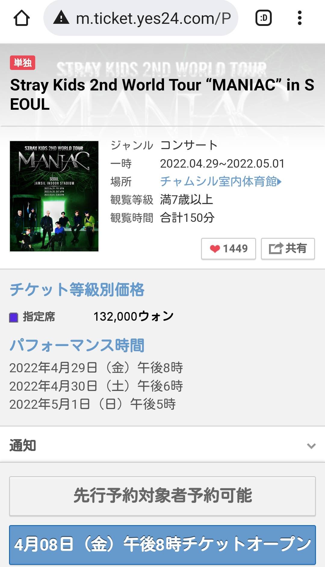 추가 좌석 오픈 안내 / Additional Seating Open Noticehttps://t.co/70gXHSfyFX#StrayKids #스트레이키즈#2ndWorldTour_MANIAC#ODDINARY#MANIAC #MANIAC_SKZ#YouMakeStrayKidsStay pic.twitter.com/K2RFn6lH7g— Stray Kids (@Stray_Kids) April 19, 2022