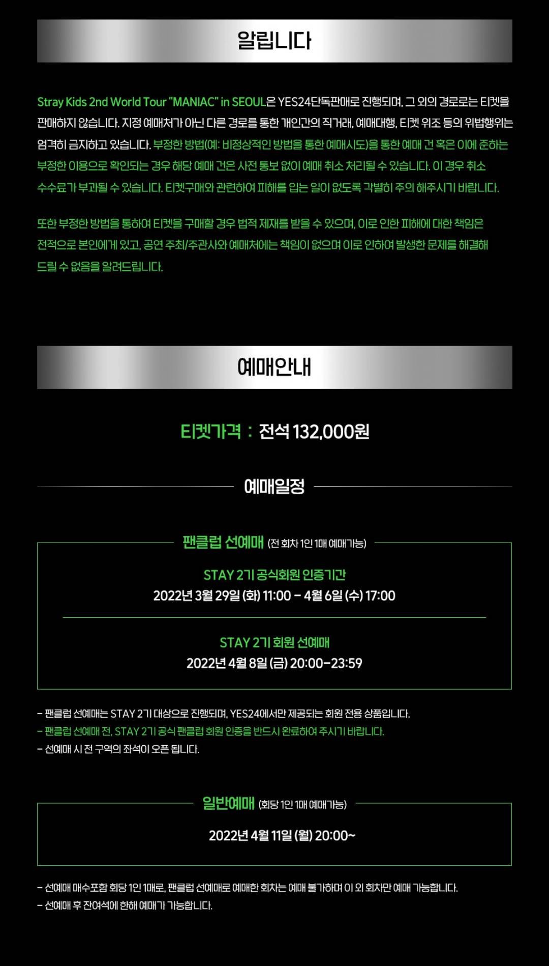 2nd World Tour “MANIAC” in SeoulSTAY 2기 팬클럽 선예매 티켓 오픈