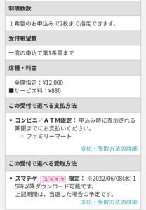 一般発売の他、FC、モバイル会員が申し込める