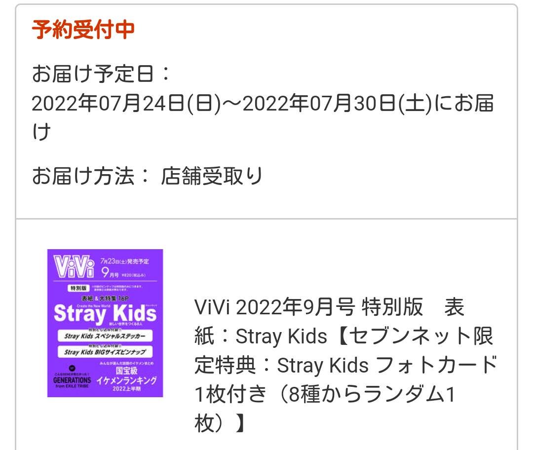ぜひ予約をお忘れなく〜#スキズ #SKZ@Stray_Kids_JP pic.twitter.com/0fGyUTMs4Z— ViVi (@vivi_magazine) August 13, 2022