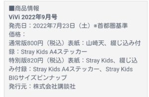 可愛すぎるステッカー付録や、特別版限定のBIGサイズピンナップもお見逃しなく!#スキズ #SKZ@Stray_Kids_JP pic.twitter.com/Hf7Ts5Txvk— ViVi (@vivi_magazine) July 23, 2022