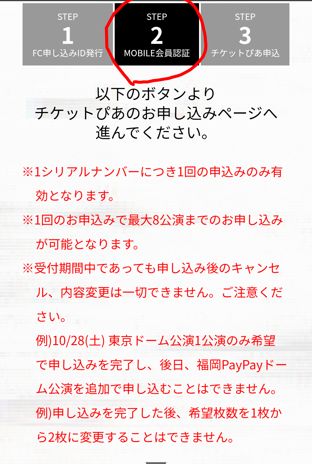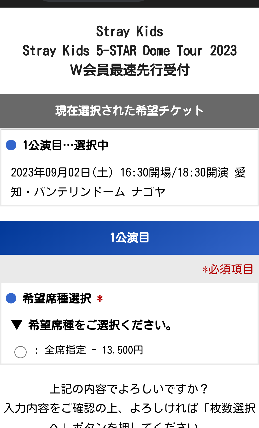 W会員先行チケット申し込みしました