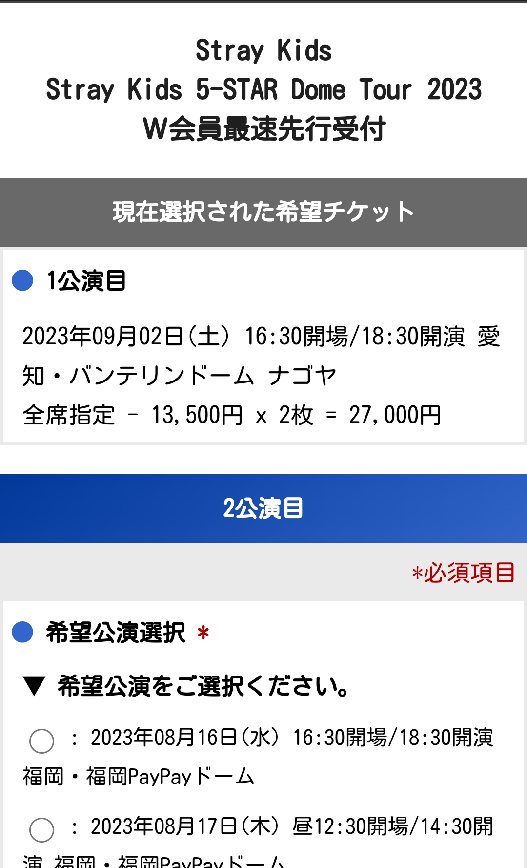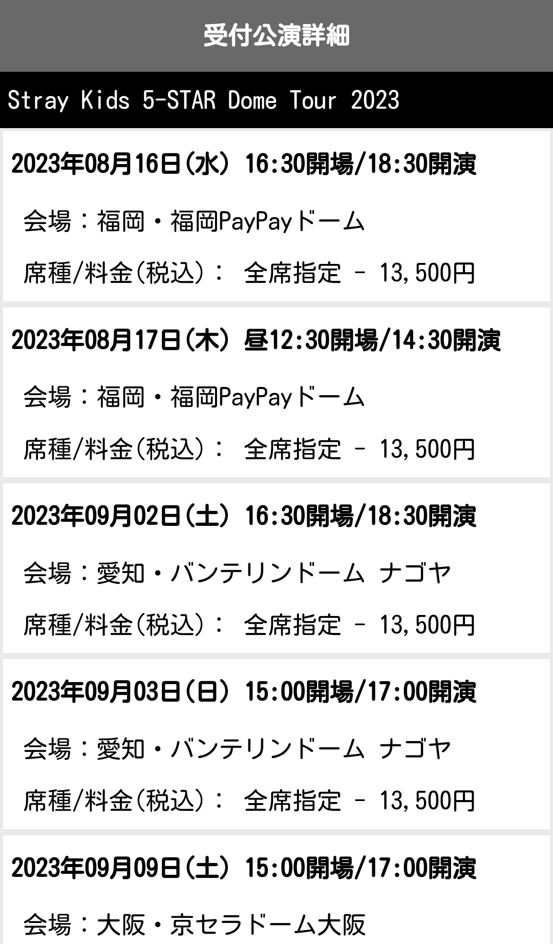 StrayKids スキズ 5-STAR ライブ 日本 2023 ①ー2 時間 会場 チケット 値段 アプグレ 座席 キャンセル 支払い方法 2枚申込 分配は?ライビュ会場(※10/28更新)