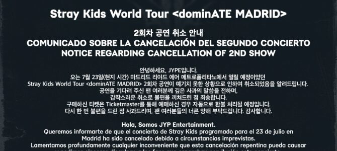目次Stray Kids World Tour <dominATE MADRID>2回目公演中止へ✡公式X(ツイッター) Stray Kids World Tour <dom … 続きを読む Stray Kids スキズ スペイン マドリード チケットは?2025 dominATE ヨーロッパ⑤会場 日程 チケット