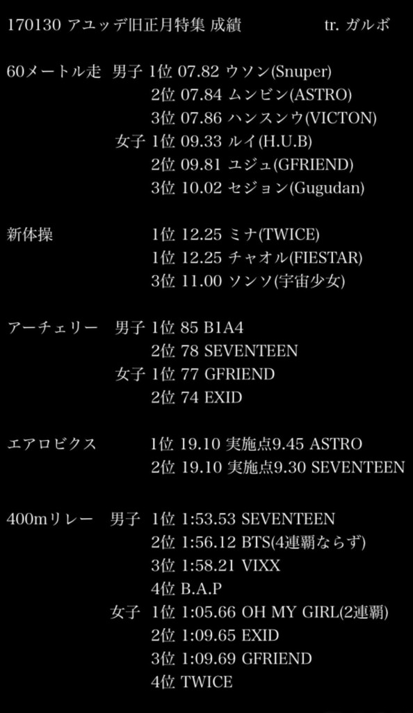 Idol Star Athletics Championship 설특집 2017 아이돌스타 선수권대회 20170130: http://www.youtube.com/playlist?list=PLtqYizcPqxZS_1igsiPrZ-LIIcKqmQxyH