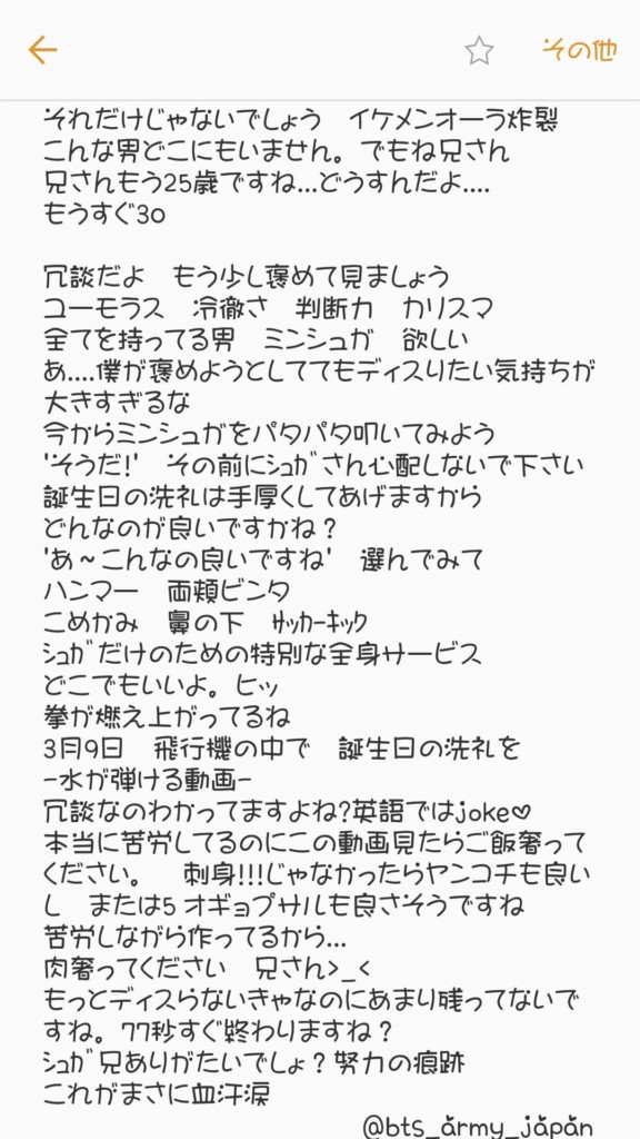 黄色がユンギさんの言葉です#슈가생일ᄎᄏ pic.twitter.com/AL0Vg8Jx09— 한솔 (@VsrhKt) March 8, 2017