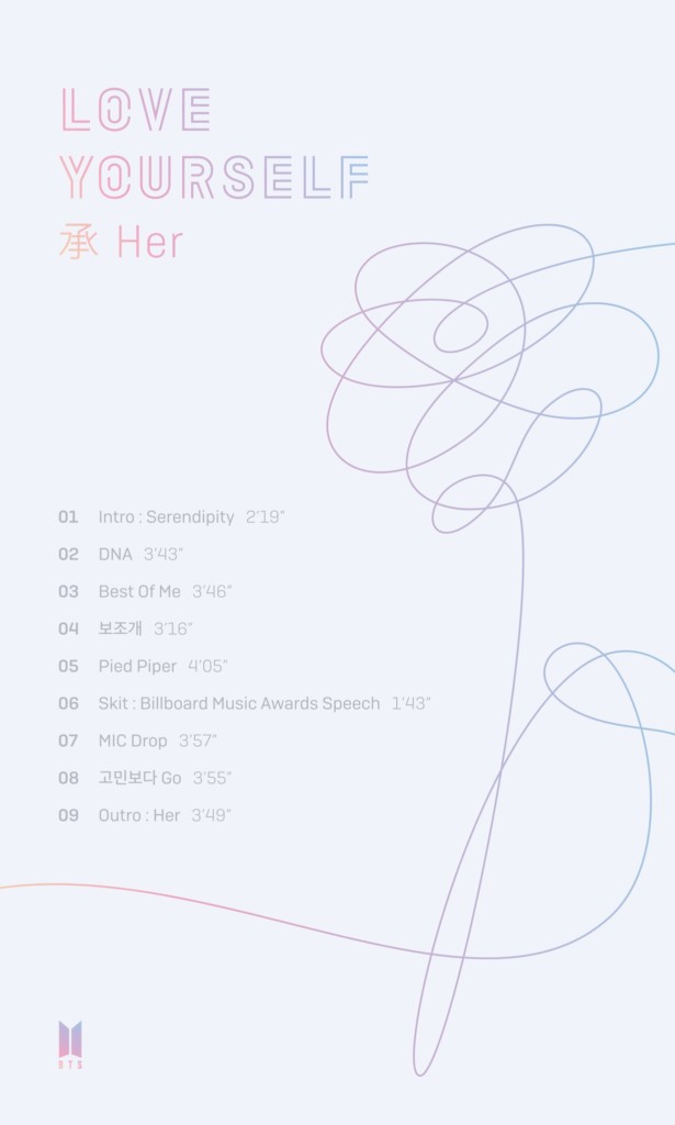 BTS LOVE_YOURSELF 承 ‘Her’ アルバム内容、Tracklist ティーザー公開 カムバヘ(9/15、16追記)