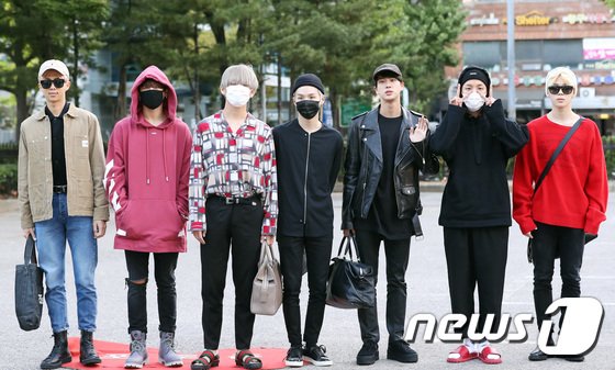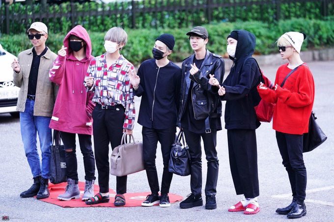 「ミュージックバンク」リハーサルに向かう防弾少年団の姿です。